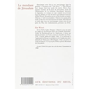 -Le Mendiant de Jérusalem — Wikipédia.Le Mendiant de Jérusalem est un roman d'Elie Wiesel publié le 1 er octobre 1968 aux éditions du Seuil et ayant reçu la même année le prix Médicis.